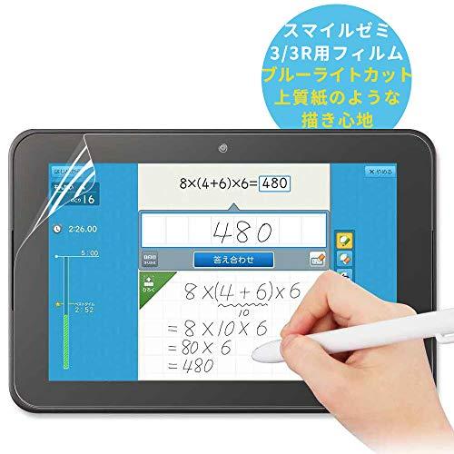 ?【対応機種】:スマイルゼミ スマイルタブレット3 / 3R フィルム? 書き心地 : 画面のチラつきと光の映り込みを防ぐAG(アンチグレア)層の独自設計により、ほどよい摩擦で紙に鉛筆で書いた時の触感を再現したデジタイザーペン対応フィルムです。?【ブルーライトカット率55%】:お子様の将来のことを考えて設計したブルーライトカット対応フィルム。 ブルーライトの波長だけを約55%低減し、その他の可視光はクリアなまま透過率をキープしています。?【抗菌仕様】液晶画面をキズや汚れから守る、抗菌タイプの液晶保護フィルムです。フィルムに抗菌機能を施し、細菌の繁殖を防ぎます。?【気泡レス・貼り直し可能】特殊シリコーン粘着剤を使用し、時間とともに気泡が抜ける、貼り直しも可能なハードコート仕様です。