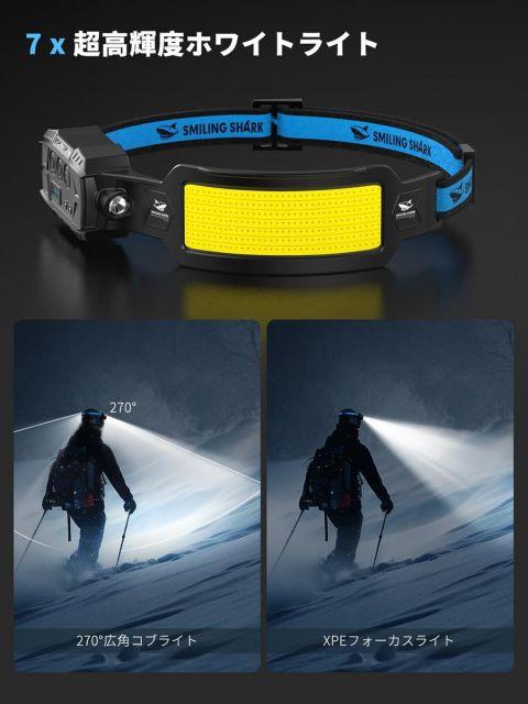サイズ:1個入◆商品名:SmilingSharkヘッドライト,【LED白&赤ヘッドライト1個入り】USB充電式7倍高輝度照明5000mAh長時間使用人感センサー付きIPX4防水防塵釣り登山散歩懐中電灯キャンプ作業災害停電最適