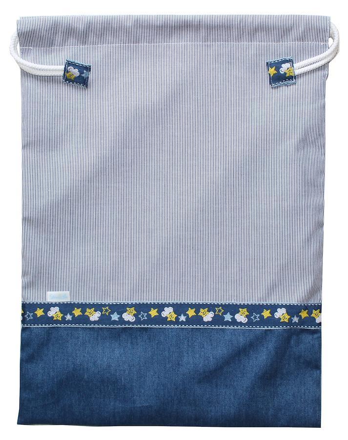 体操服、スモック、エプロンなどがすっぽり入る大きさの巾着タイプのお着替え袋。ナイロン裏地付きの丈夫でしっかりとした二重仕立て。シンプルで上品なデザイン。