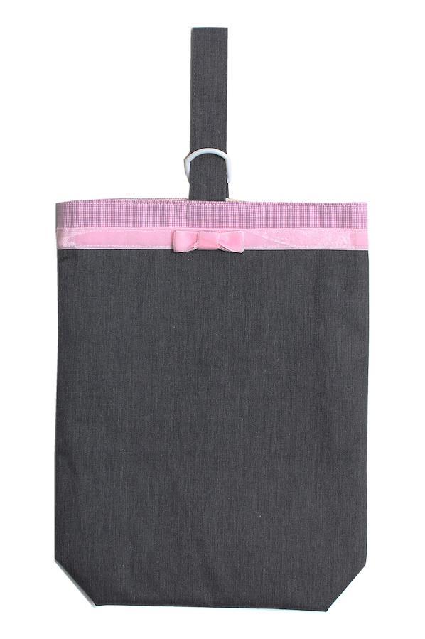 ■特徴スニーカータイプの上履きも収納できる、開閉しやすいループ式シューズバッグ 。汚れの付きにくいナイロン裏地付きの二重仕立て。