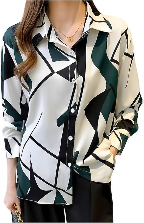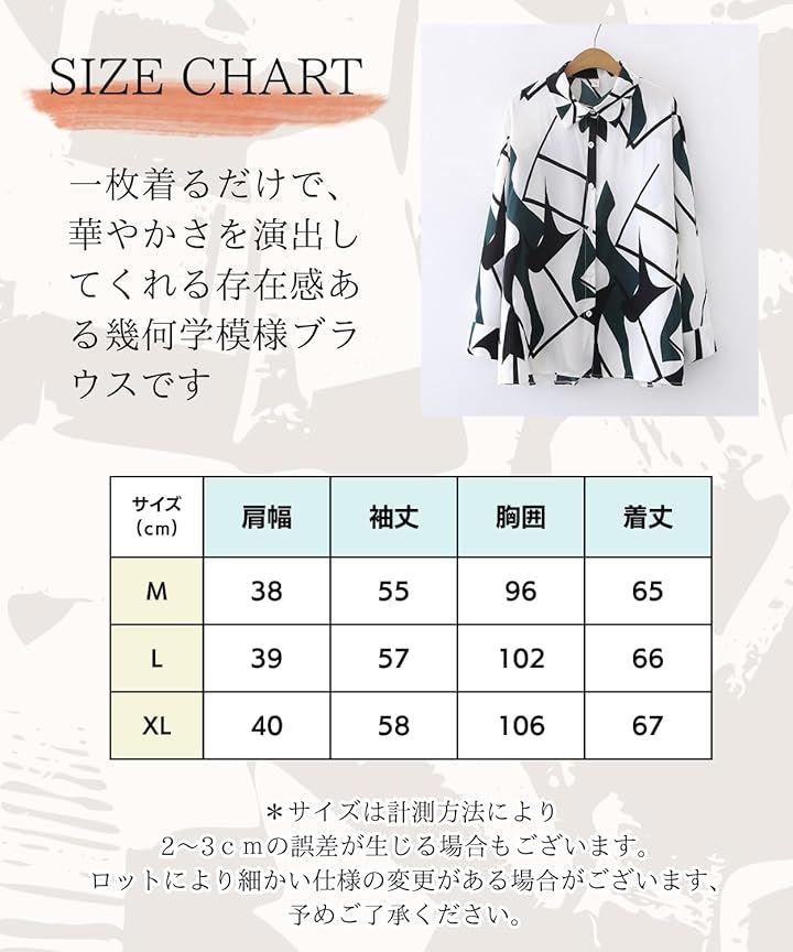 ブラウス シャツ レディースは、上品でモダンな幾何学模様が特徴です。