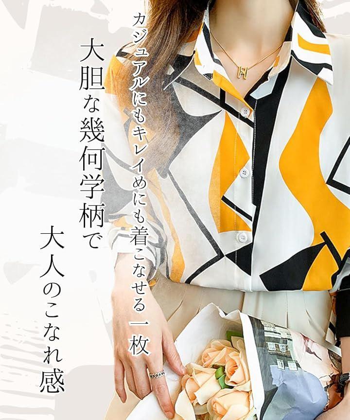 ブラウス シャツ レディースは、上品でモダンな幾何学模様が特徴です。