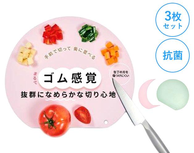 ★まるでゴム感覚!木やポリプロピレン製のまな板に比べて抜群になめらかな切り心地!*抗菌剤を直接練り込んでいるためキズついても抗菌効果が落ちない!*切り分け上手!手前で切ったものを奥に並べていけるD型まな板!*抜群に滑らかな切り心地。*手前で切って奥に並べる。*ポリエチレン製なので包丁の刃を傷つけにくい。*肉・魚・野菜用にとなど使い分けできる3枚セット。*先行発売しましたレギュラーサイズより大きくなったことで、型の形状から『手前で切ったものを奥に並べられる・・切り分け上手!
