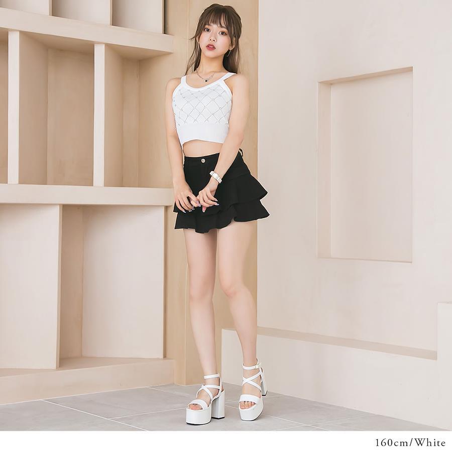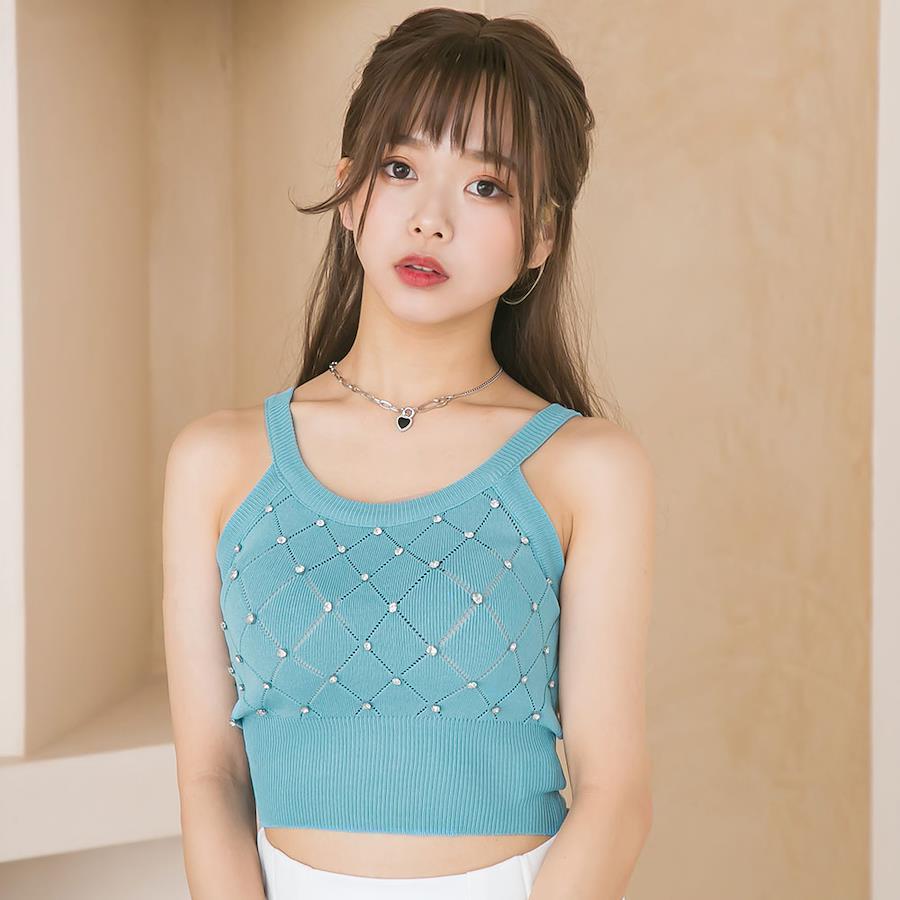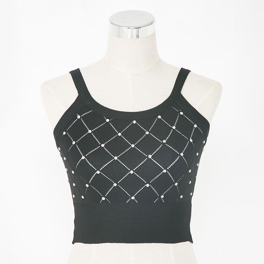 ”ビジューがきらめく華やかなシンプルキャミニット”