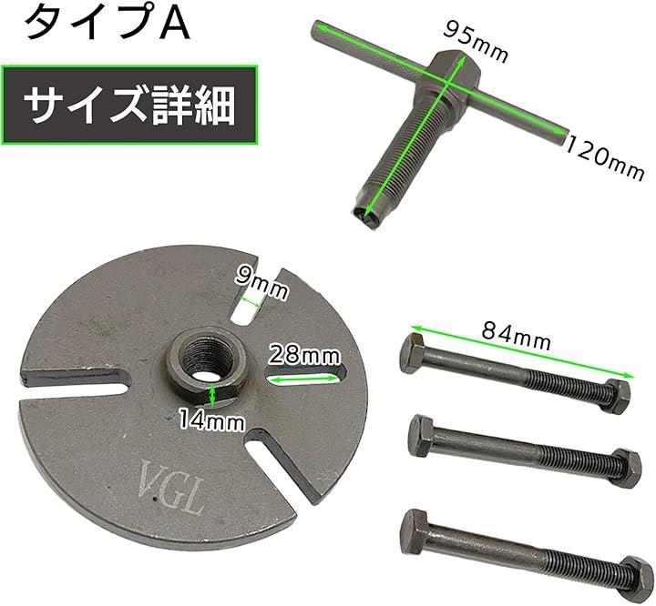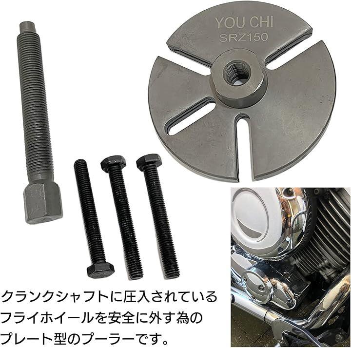 このフライホイールプーラーは、エンジンメンテナンスを行う際の必須アイテムであり、エンジンの分解や整備の負担を軽減します。
