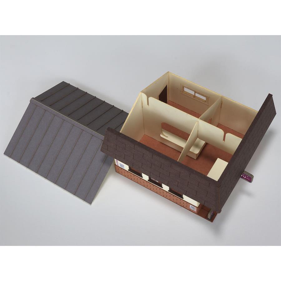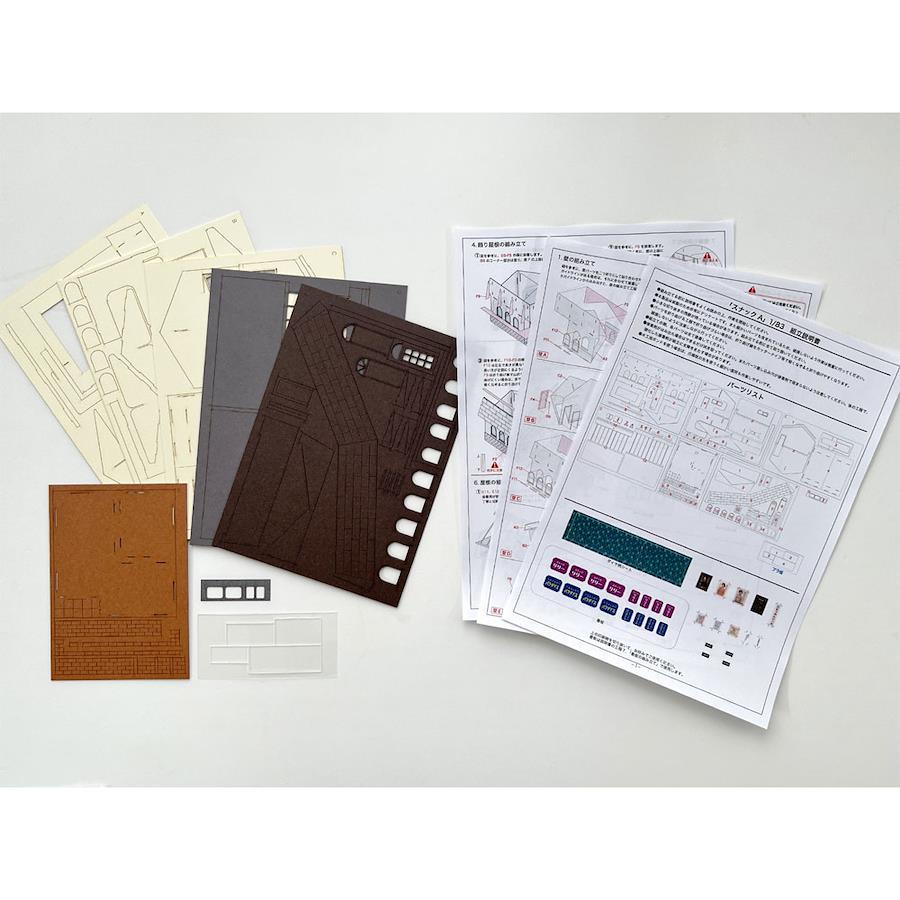 品番:ST-038-83C着色済みのペーパー製組み立てキット。屋根は脱着式。窓ガラス用にカット済み透明シートも付属するので、そのまま組み立てるだけで作例のように仕上がります。