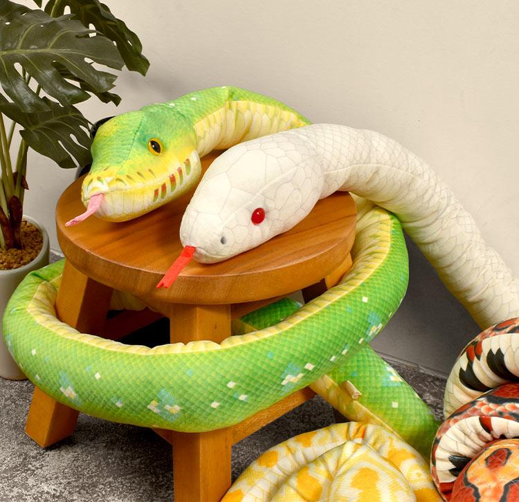 【スネークぬいぐるみ】へび好きも納得。まるで本物みたいなリアルプリントのぬいぐるみ!もっちりとした質感で低反発な触り心地。持ち上げた時のずっしり感も本物みたいでドキッとします!