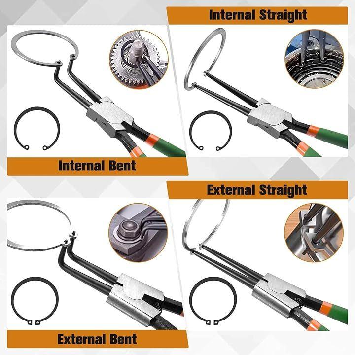 これらのスナップリングプライヤーは、安全なファスナー操作に必要な強度と精度を提供し、あらゆる整備士や技術者のツールキットに不可欠な一品です。