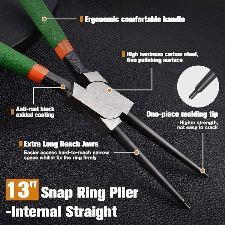 LEONTOOL スナップリングプライヤー 13インチ 内用サークリッププライヤーは、プロフェッショナルおよびDIY用途向けに設計されたヘビーデューティサークリッププライヤーです。