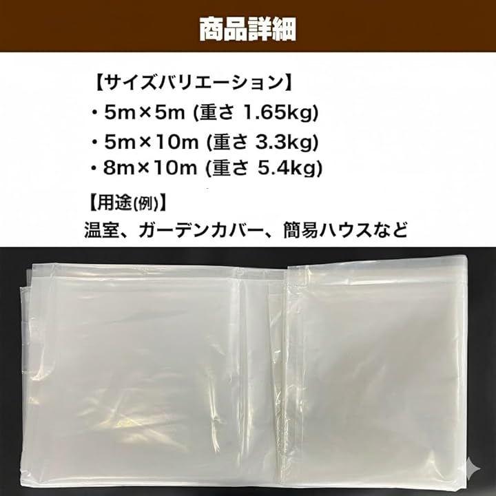 ビニールハウス以外にも、荷物の防塵カバー、窓や屋外設備の雨除け、屋内作業の間仕切りシートとしても活用できます。