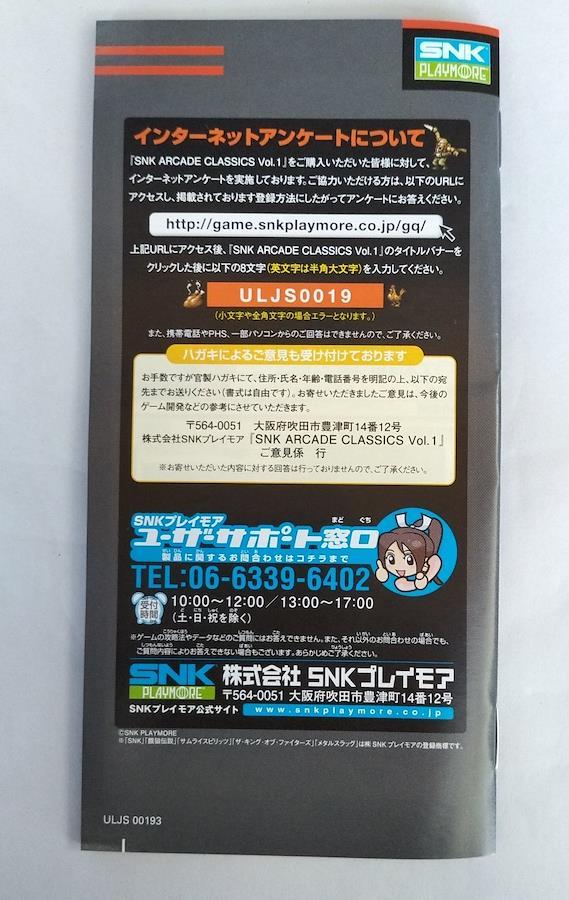 SNK ARCADE CLASSICS VOL.1 ULJS-00193 SNK PSPソフト SNKULJS-00193SNK ARCADE CLASSICS VOL.1