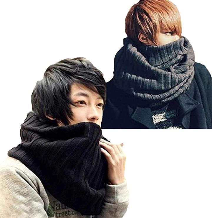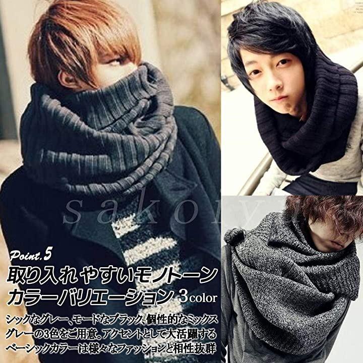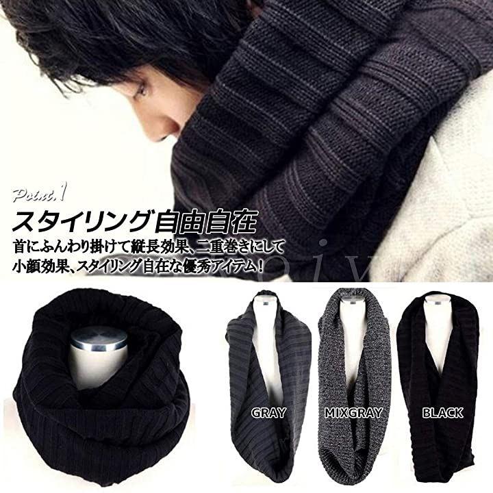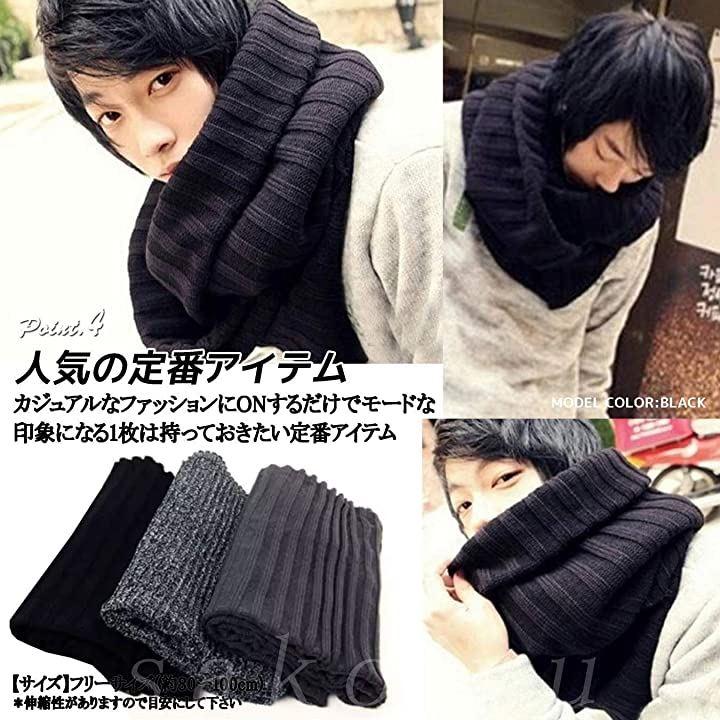 ・1枚でコーデが決まるモノトーンのメンズ・スヌードです。