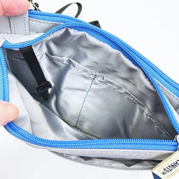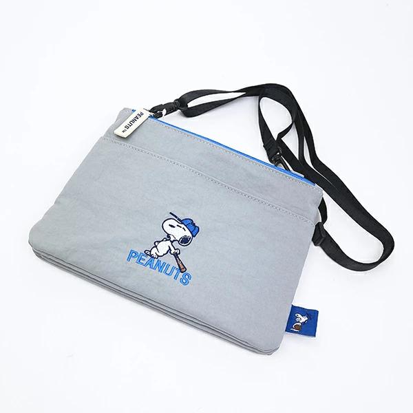 スヌーピーの2ルームショルダーバッグです♪ベースボールのスヌーピー刺しゅうがキュート♪コンパクトサイズですが、収納部が2つありポケットも多数あるので収納力は抜群◎カギなどに便利なフックがついていたり外側にもポケットがあり、とっても便利♪肩紐は取り外し可能で、男女問わず使っていただけます☆彡