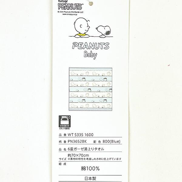 スヌーピーの6重ガーゼ湯上りタオルです。日本製の綿100%なのでママさんも赤ちゃんも安心♪体や頭を拭く以外にもちょっとしたブランケット代わりにもなっちゃいます!スヌーピーたちの可愛いデザインにほっこり癒されます♪透明のバッグ付きなので持ち運びにも便利です☆