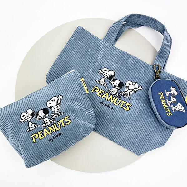 歴代のスヌーピーイラストがカワイイポーチです。ランチバッグやデイユーズにも!コーデュロイ生地がオシャレ◎