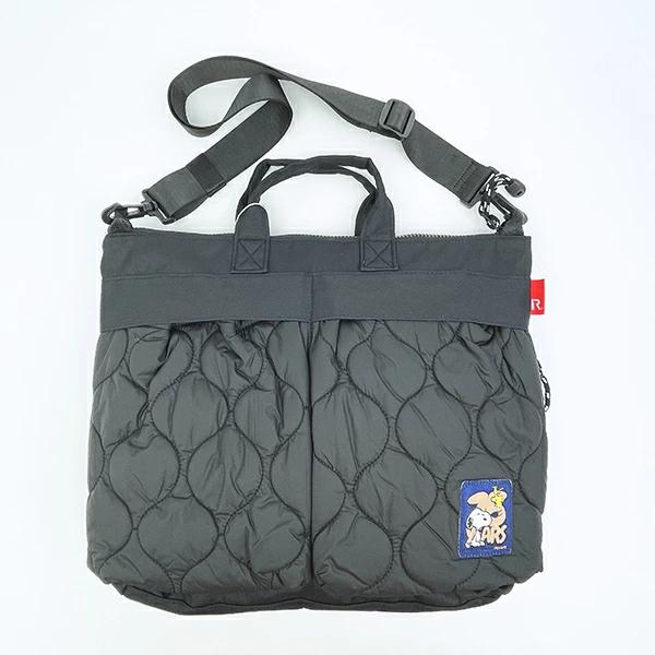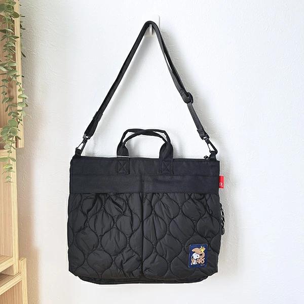 スヌーピーのA4ワイド2WAYショルダーバッグです。A4サイズが余裕で入る大きさ!PCやタブレットの収納に安心な大きめウレタン入りポケット付きなので通勤・通学に便利☆前面のふっくら大きめポケットがキャッチーな2way「A4ワイド」。75周年を記念した大きめネームがアクセント♪取り外し&長さ調節可能なショルダーベルト付きなので手持ち、肩掛け、斜め掛け、お出かけシーンに合わせて使い分けOK!内側にも外側にもポケットが充実していて嬉しい~☆収納力抜群なのでマザーズバッグとしてもおすすめです♪