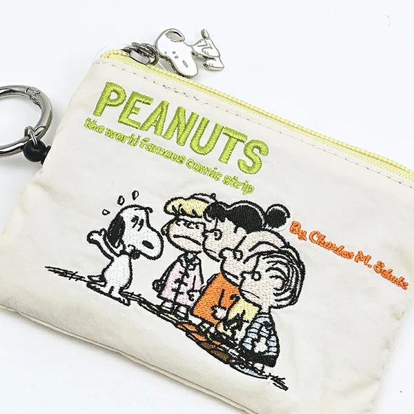 スヌーピーの大人でも使いやすい色合いの刺繍パスポーチです。どっちにも伸びる便利なリール付き♪バッグなどに付けられるので使い勝手◎リップや目薬などの小物も一緒に入れられて便利に使えます☆彡
