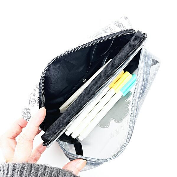 ベースボールデザインがおしゃれなポーチ。表面はメッシュ、裏面は透けない素材になっています。2つのポケットをうまく使えば小物が迷子になりません◎ペンケースにも◎