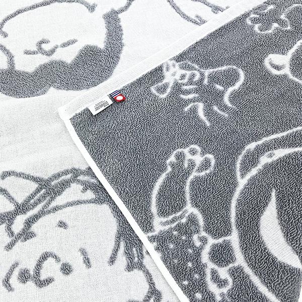ガーゼ地に無撚糸パイルでPEANUTSの仲間たちが浮き出るデザインのバスタオルです。ふわふわやわらかい風合いが◎今治タオルブランドネーム付きです!洗濯機で洗えるので(洗濯ネット使用)汚れてもすぐに洗えて、清潔に使えて普段使いにぴったりです☆彡