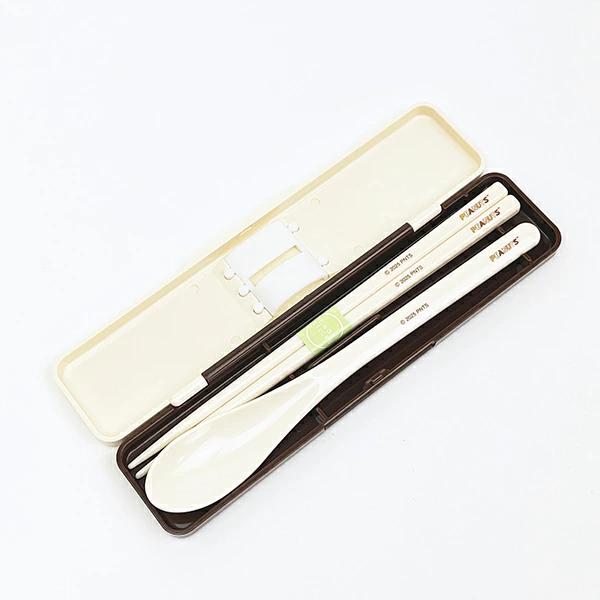 クマをぎゅっとしているデザインのシリコンクッションが付いているので、持ち運びの際にカチャカチャ音が鳴りにくい食洗機対応コンビセット☆使いやすい18cmのお箸とスプーンのセットです。スヌーピーのランチアイテムなどと揃えれば、ランチタイムも楽しくなっちゃいそうです☆彡食洗機使用可◎【箸のサイズ:18cm】
