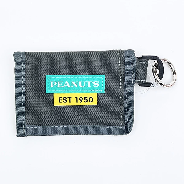 ピーナッツデザインのコインケースです。中身が見やすく使いやすい小銭入れとなっており、カード収納×2。カラビナリング付き。水滴に強い撥水生地。リサイクルペットボトル原料RE-PET素材を使用した、SDGs推進のアイテム。