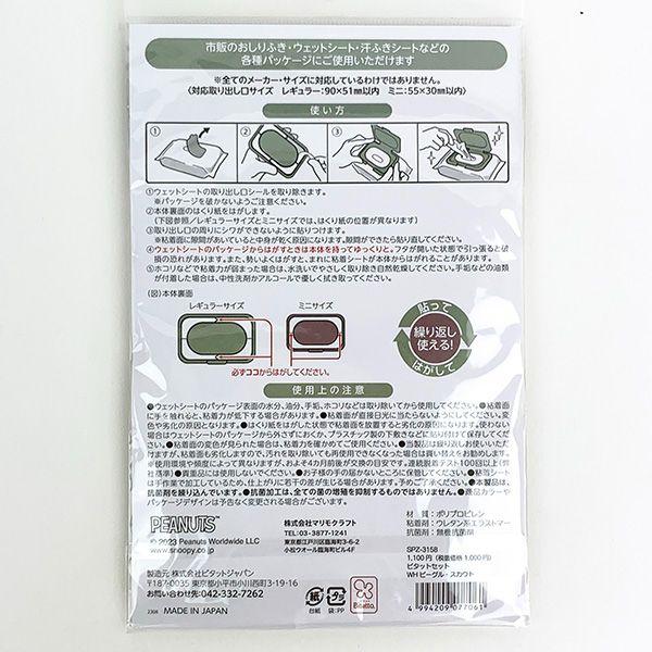 貼ってはがせるウェットティッシュのフタ!スヌーピーバージョンです。色んな表情のスヌーピーが可愛すぎます♪サイズもレギュラー・ミニの2種セットです。【対応取り出し口サイズ レギュラー90×51mm以内 ミニ55×30mm以内】