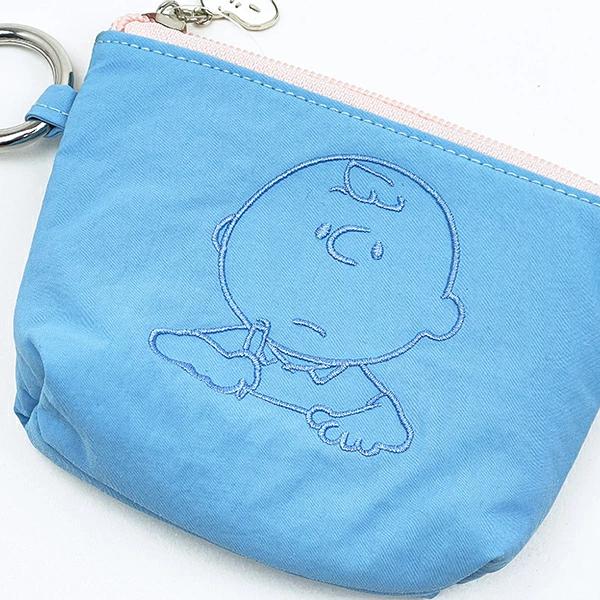 チャーリーブラウンのカラーミニポーチです。リップや目薬など小さい小物を収納するのにぴったりなサイズ感☆スヌーピーのファスナーチャームがとってもキュート♪カラビナ付きなのでバッグなどに付けて使えます☆彡