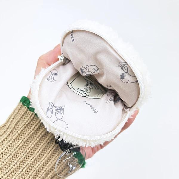 スヌーピー(チャーリーブラウン)の冬にぴったりなもこもこ感が可愛いフェイスポーチです。普段使いのバッグに付けて、鍵やイヤホンなどバッグの中で迷子になりがちな小物を入れておくのにも便利☆お揃いのスヌーピーと一緒に使えば可愛さ抜群です♪