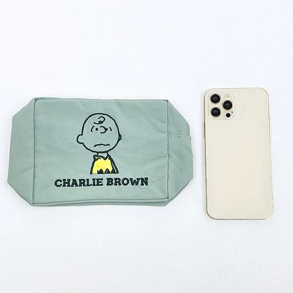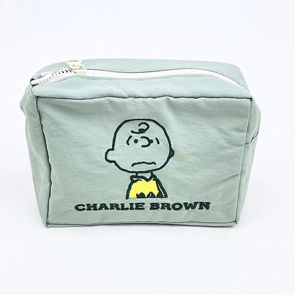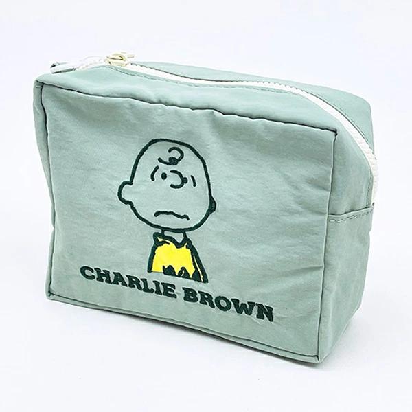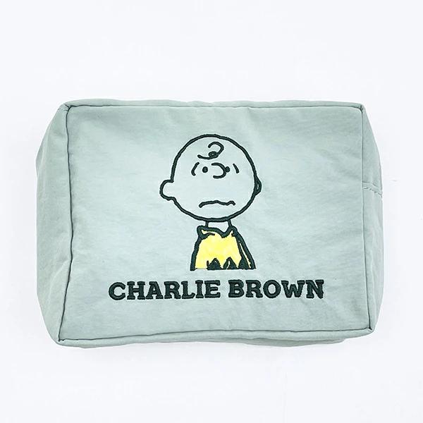 チャーリーブラウンのスクエアポーチです。アップリケ刺繍が可愛い♪メイク用品や小物を入れるのにぴったりなサイズ感♪ぜひ同シリーズのバッグなどと一緒に揃えてみてください☆彡