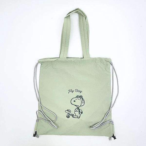 スヌーピーのリバーシブルデザインが可愛いナップザックです。取っ手付きなので使い勝手◎体操服や着替え入れにもおすすめ☆ひっくり返すとチェック柄になっていて、スヌーピーのデザインネームが付いているのがとってもキュート??ぜひ同デザインのポーチやトートバッグと一緒に揃えてみてください☆彡
