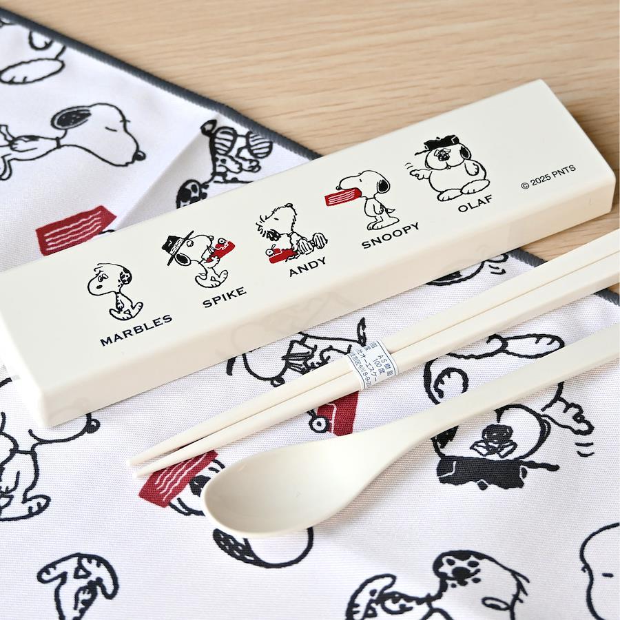 【コンビセット】年齢・性別問わず使いやすい!スヌーピーと仲間たちの柄が可愛いランチタイムに便利なお箸&スプーンのコンビセット。開閉しやすいスライドケース付きで持ち運びも安心!同じ柄のランチグッズで揃えて使うのもおすすめ♪安心の日本製アイテムです。