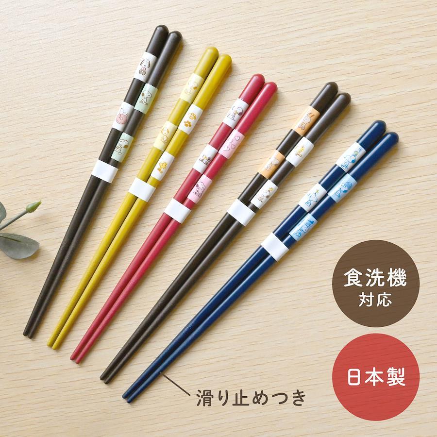 ぷっくりしたスヌーピー柄のとんぼ玉が可愛いお箸。安心安全の日本製で、食洗機OKなのでお手入れもラクラク♪箸先はざらっとした滑り止め付きで食べ物が掴みやすい◎21cm~23cmの長さで老若男女問わず使いやすく、プレゼントにもおすすめです。