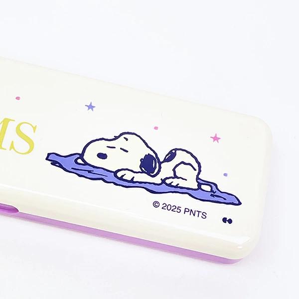 眠っている姿が可愛いスヌーピーの箸&スプーンです。重ねてしまえるのでコンパクトで持ち運びも便利☆カチャカチャ音が鳴らないシリコーンクッション付きのケースが嬉しいポイント♪ぜひランチタイムのお供にいかがですか?【サイズ】箸:195?、スプーン:180?、ケース:205×52×23?