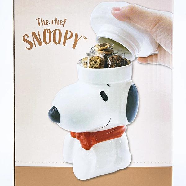 シェフスヌーピーデザインのクッキージャーです。フタにはパッキンが付いていて食品雑貨収納に◎