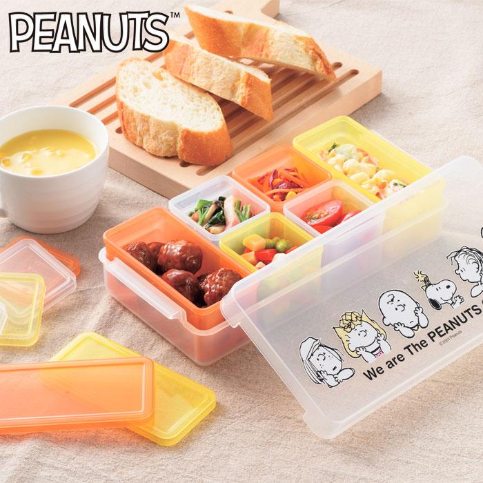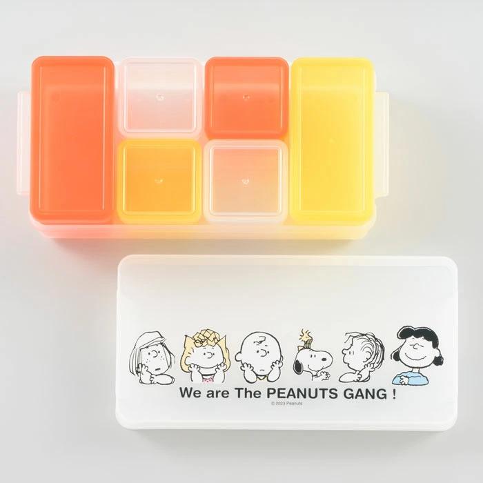 かわいいスヌーピーが描かれた便利なケース付保存容器。半透明カラーのキューブ容器で中身も見えて見た目も華やか。小分けした容器をまとめて出し入れ・収納に便利な外ケース付。お弁当用のおかず、薬味、スパイスなどの小分け保存や料理の下ごしらえに大活躍!離乳食を小分けにしたり冷凍保存するのにも便利です。収納に便利な外ケースは食卓に出しておいても衛生的に保管ができます。