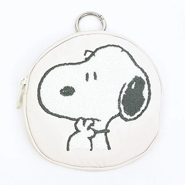 スヌーピーのサガラ刺繍がかわいいダイカットパスポーチです。形状はデザインに合わせてダイカット仕様♪裏側にはカードの落下を防ぐスナップボタン付きポケットがあるので、定期やICカードを入れるのにぴったり☆ポーチの中にも内ポケット付きで小物や小銭を入れるのに便利♪定期やICカードと一緒に小銭などを入れて一緒に持ち運べちゃいます☆彡