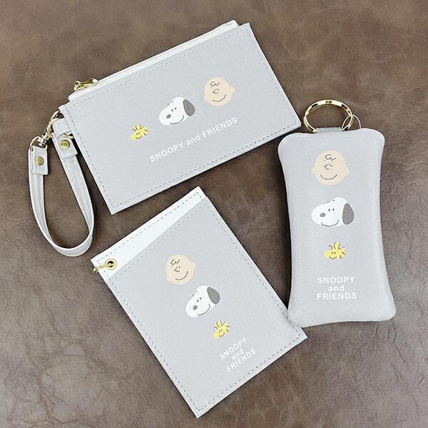 SNOOPY Double-sided Pass Case, Gray, Made in Japan