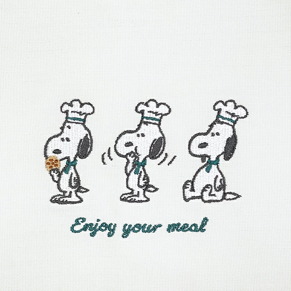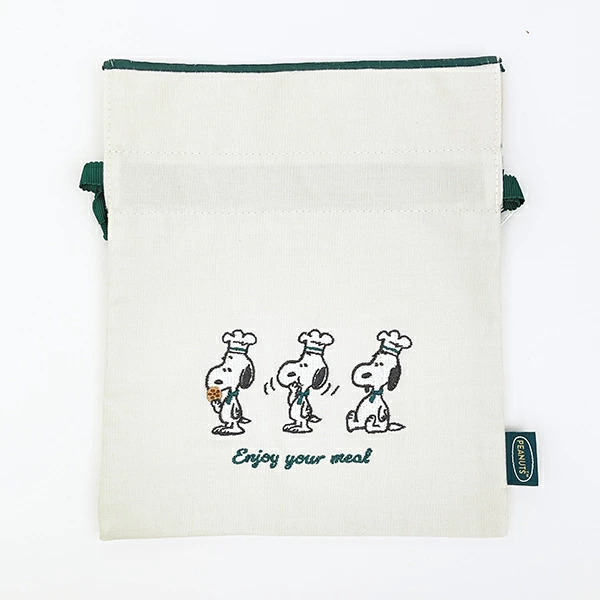 スヌーピーの巾着です♪シェフスヌーピーの刺しゅうがとってもキュート♪ちょっとした小物入れにピッタリ◎同シリーズの他アイテムと一緒に、揃えたくなっちゃう☆彡