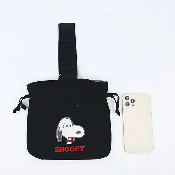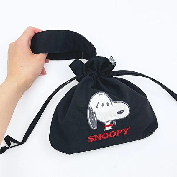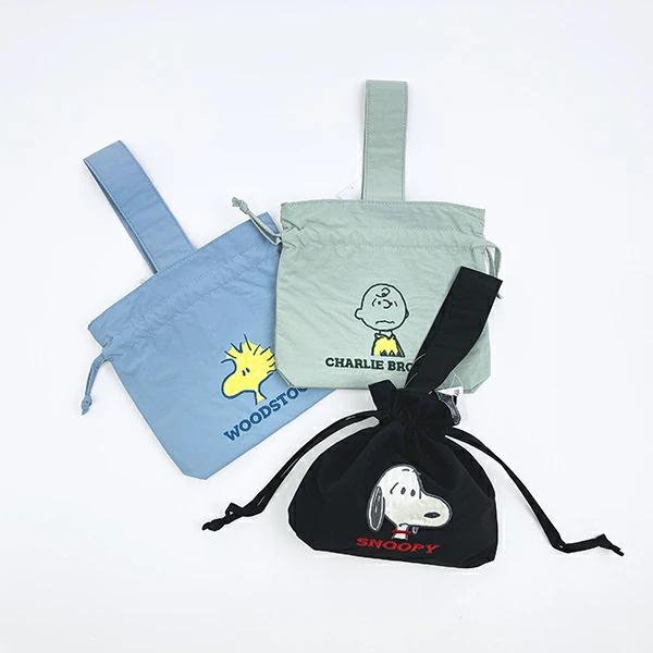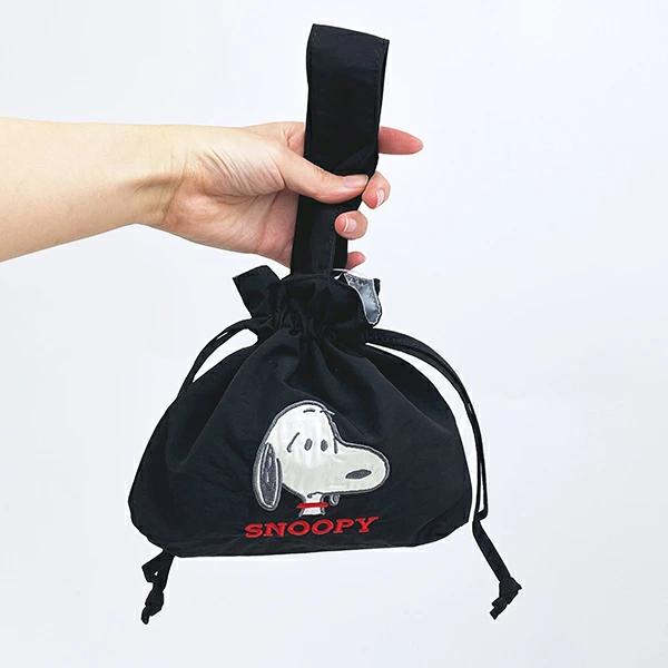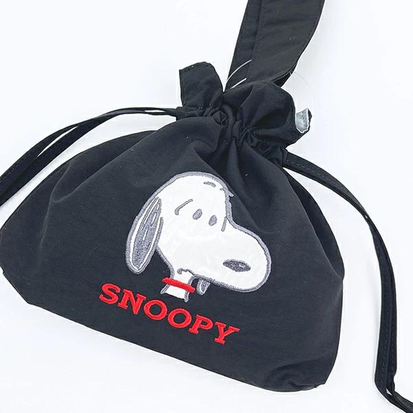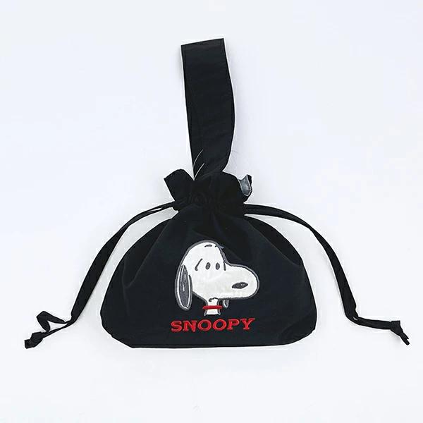 スヌーピーの巾着バッグです。アップリケ刺繍が可愛い♪持ち手付きで使い勝手◎ランチバッグとしてもおすすめ♪ぜひ同シリーズのポーチなどと一緒に揃えてみてください☆彡