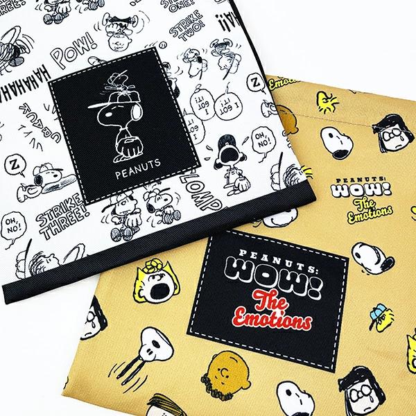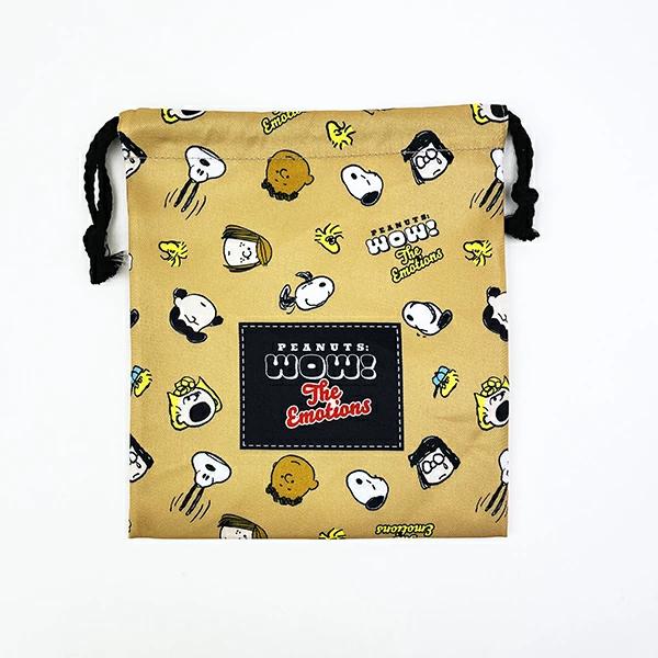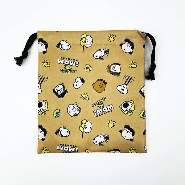 スヌーピーキャラのチラシ柄がカワイイ巾着です。メイク入れやコード類をまとめて入れるのに便利な大きさです。