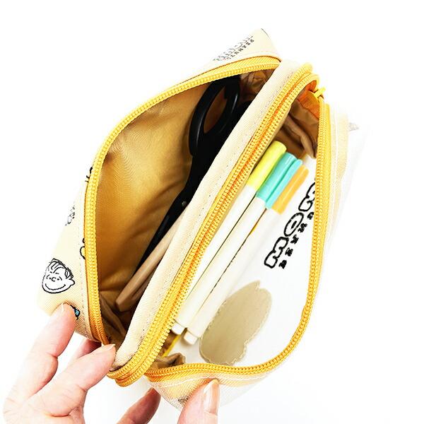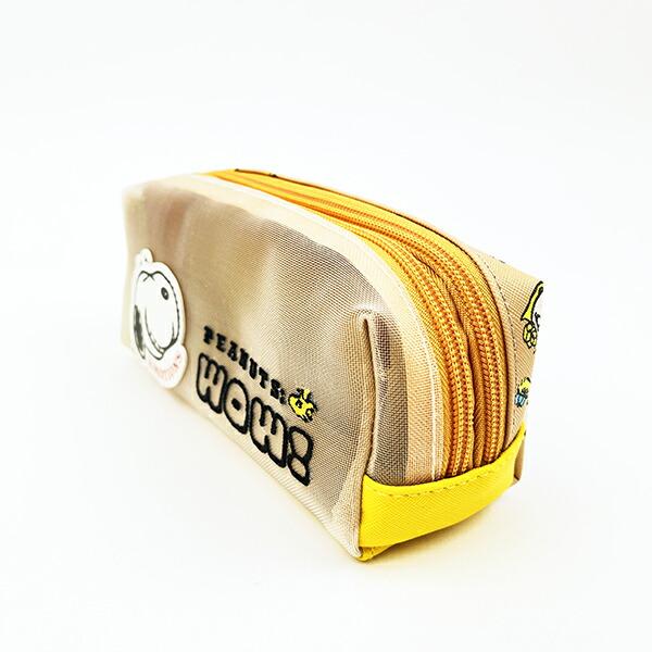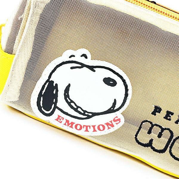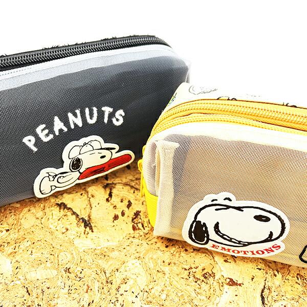 スヌーピーと仲間たちのフェイスデザインがかわいいポーチ。表面はメッシュ、裏面は透けない素材になっています。2つのポケットをうまく使えば小物が迷子になりません◎ペンケースにも◎
