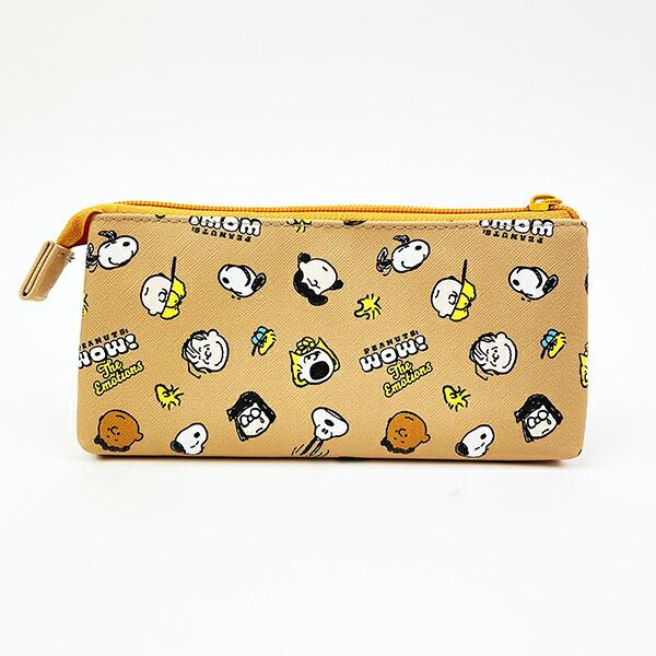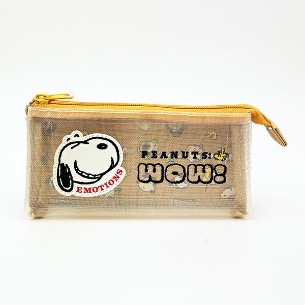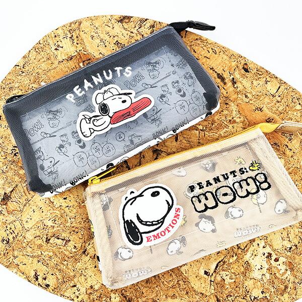 スヌーピーと仲間たちのフェイスデザインがかわいいポーチ。表面はメッシュ、裏面は透けない素材になっています。3つのポケットをうまく使えば小物が迷子になりません◎