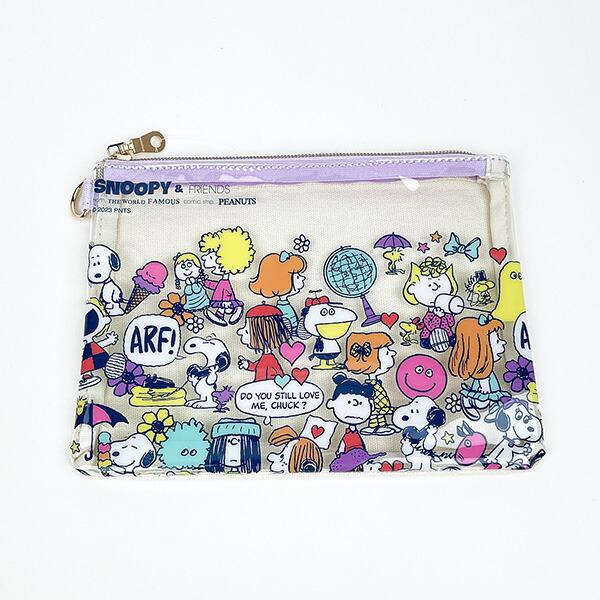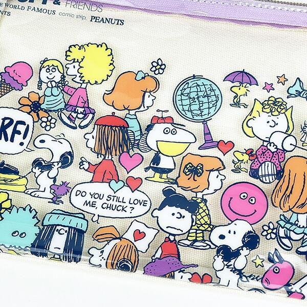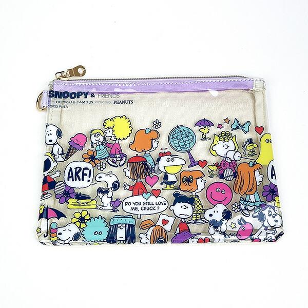 スヌーピーの可愛い世界観のフラットポーチです♪イラストを見ているだけで楽しくなっちゃいます♪ギフトにも喜ばれそうでオススメ◎ペンポーチや化粧ポーチなど、フラットな形なのでカバンの中でもかさばらずスッキリ◎