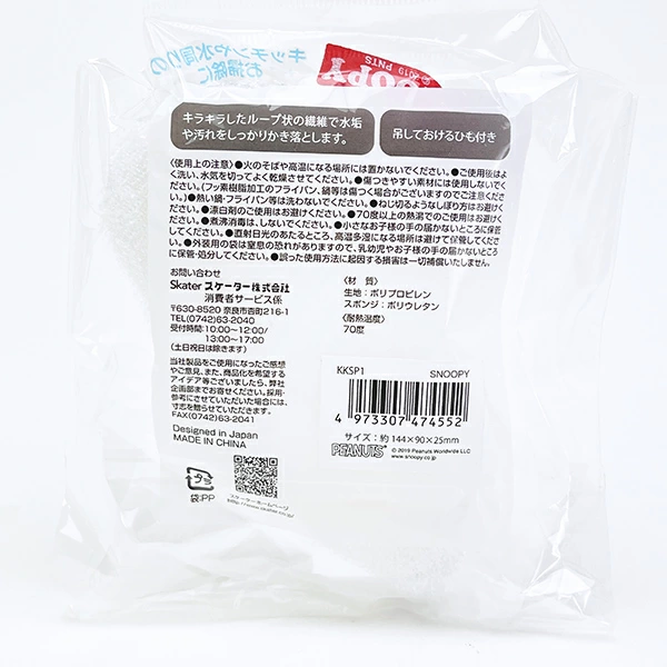 スヌーピーのキラキラで可愛いキッチンスポンジです。キッチンや水周りのお掃除に◎ただ可愛いだけじゃない!キラキラしたループ状の繊維で水垢や汚れをしっかりかき落とします♪吊るしておけるひも付きが嬉しいポイント♪毎日のお掃除も楽しくなること間違いなしです☆彡