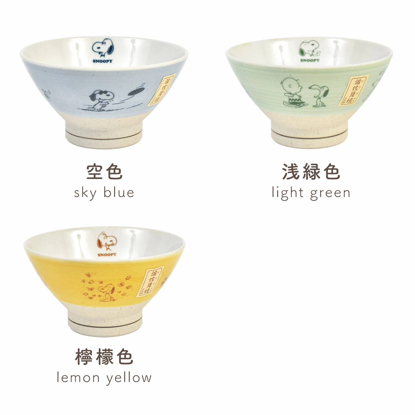 スヌーピーのデザインが可愛い、波佐見焼(はさみやき)のお茶碗。透明感のある釉薬が美しく鮮やかな色合いです。電子レンジ・食洗機対応で、毎日の食卓でも気軽に使えます。小ぶりなので女性や子供も使いやすいサイズ感です。