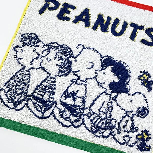 スヌーピーと仲間たちをジャカード織で表現されたデザインのウォッシュタオルです♪レトロカラーがかわいいやわらかタオル◎
