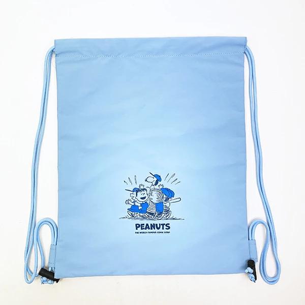 ベースボールスヌーピーデザインのナップザックです。赤や青を基調としたカラーデザインがカワイイシリーズです。A4サイズがすっぽり入る大きさで、薄くて軽いのもポイント!