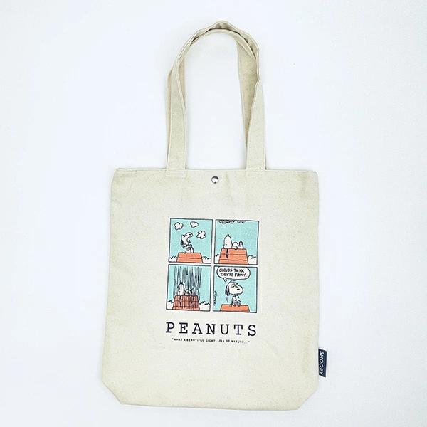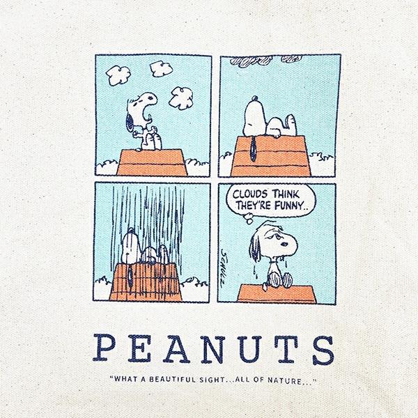 スヌーピーのレッスンバッグです♪コミック風の4コマになったスヌーピーがキュート♪A4サイズがすっぽり入る大容量♪背面にはファスナー付きポケット、中には小物の整理に便利な内ポケット付き♪学校や習い事などデイリーに使えます☆彡