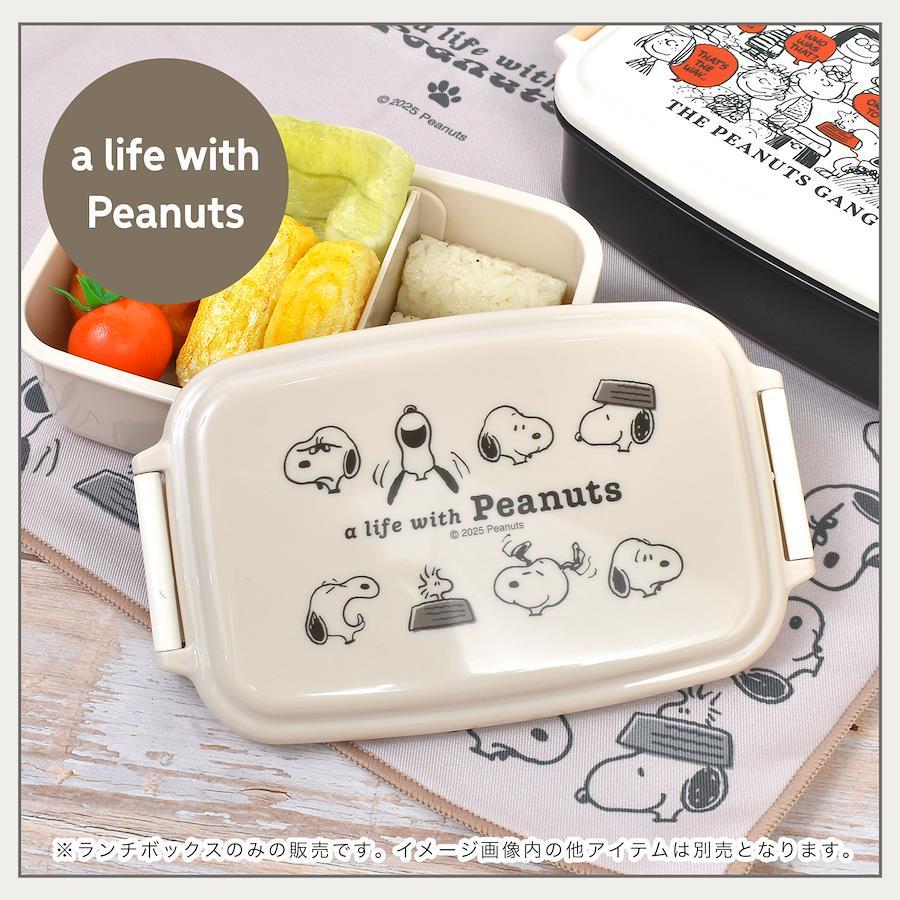 【1段ランチボックス】ドーム型のフタと仕切り付きで詰めやすい!スヌーピーと仲間たちのイラストが可愛いシンプルな1段タイプのお弁当箱。フタを外せばレンジで温めも可能、容量はお子様や女性にもちょうどいい500ml。安心の日本製アイテムです。同じ柄のランチアイテムと揃えても◎