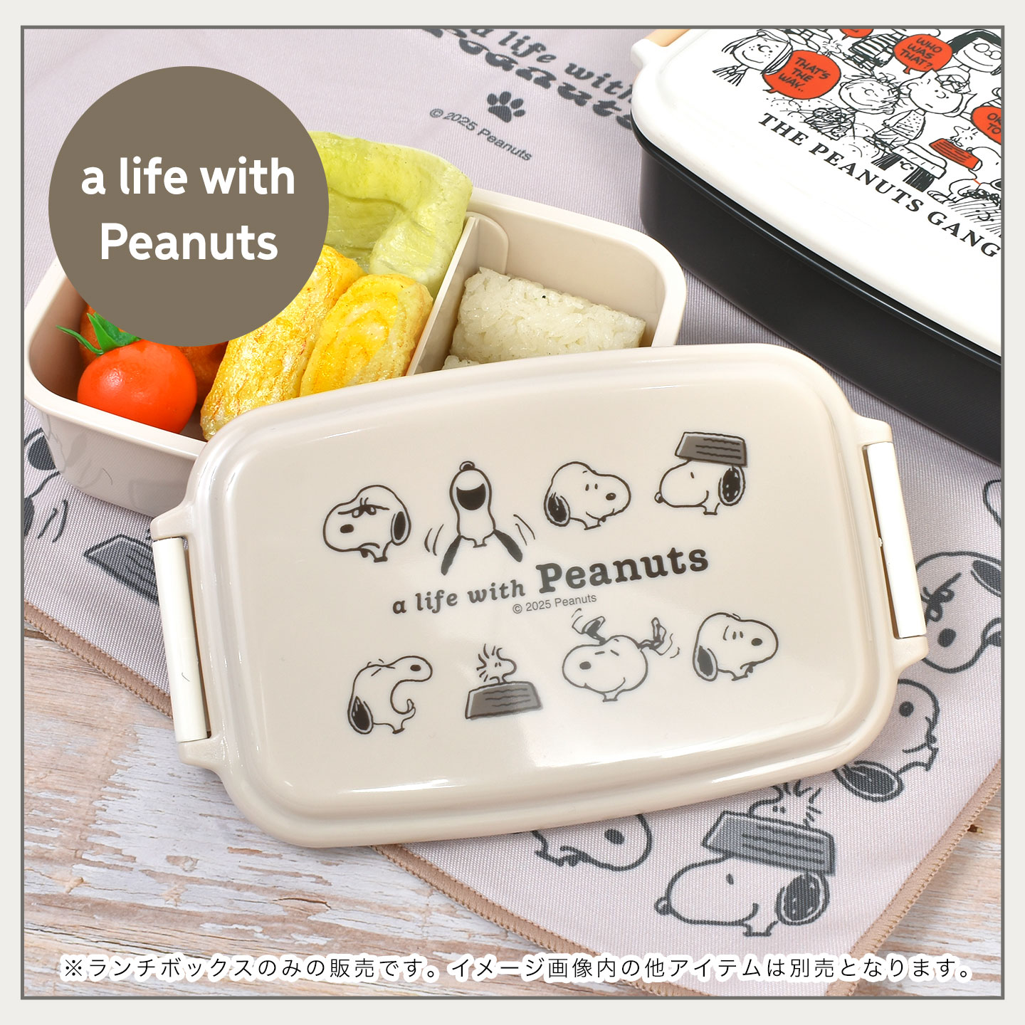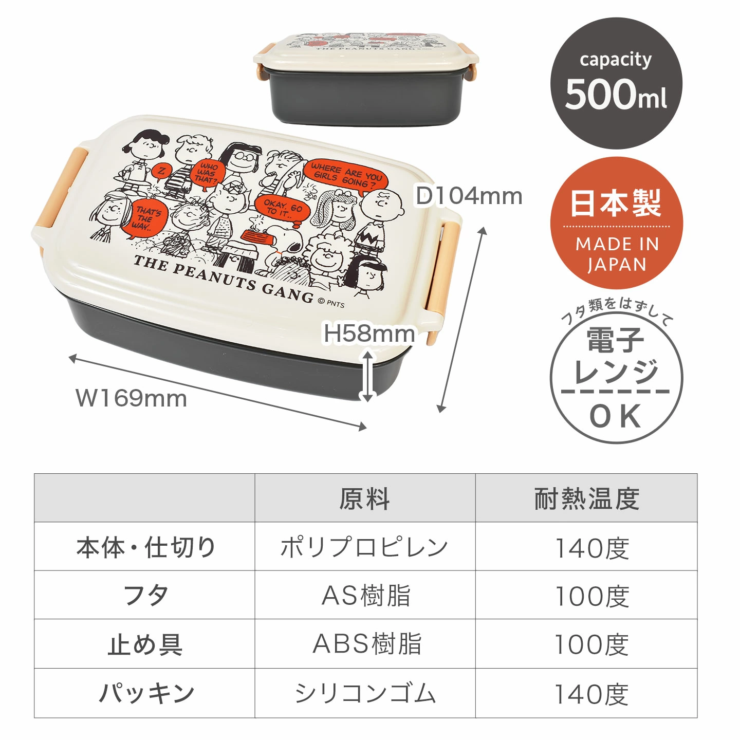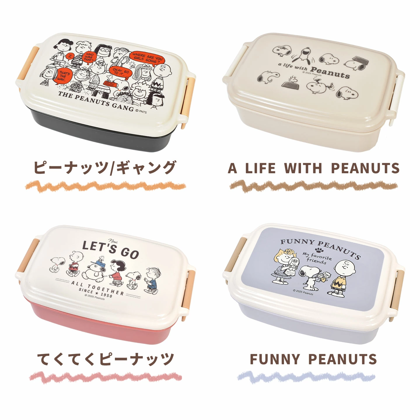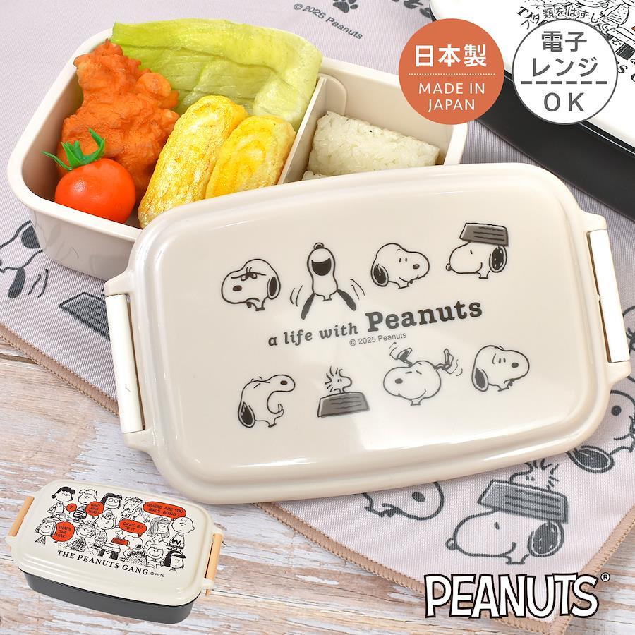 【1段ランチボックス】ドーム型のフタと仕切り付きで詰めやすい!スヌーピーと仲間たちのイラストが可愛いシンプルな1段タイプのお弁当箱。フタを外せばレンジで温めも可能、容量はお子様や女性にもちょうどいい500ml。安心の日本製アイテムです。同じ柄のランチアイテムと揃えても◎